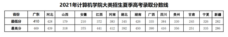 2021年计算机学院大类招生夏季高考录取分数线