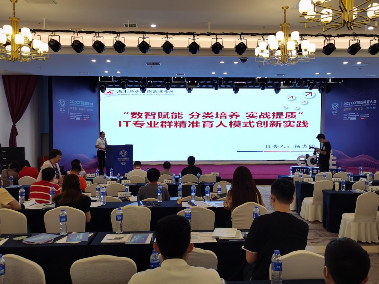 应大会组委会邀请,计算机学院副院长杨忠明教授作《IT专业群“数智赋能、分类培养、实战提质”的精准育人模式创新与实践》的主论坛报告和《人工智能高本一体化国家专业教学标准研制与应用》的分论坛专题报告。报告主要从数字经济时代人才培养的挑战、数字化人才培养主要做法、软件技术高水平专业群改革成效等方面介绍了我校人才培养的建设新思路与成果,得到了与会专家、老师以及企业代表的认可,并与参会代表进行了深入交流。