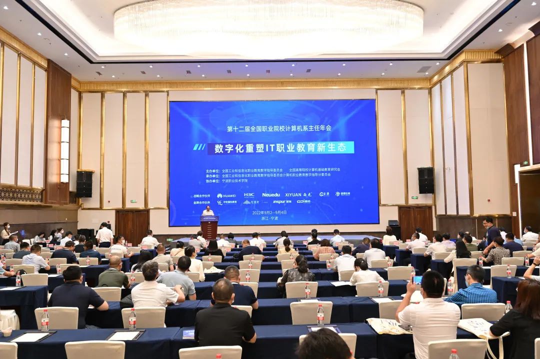 本站讯 9月2日—9月4日,由工业和信息化职业教育教学指导委员会、全国计算机基础教育研究会主办,工业和信息化职业教育教学指导委员会计算机职业教育教学指导分委员会承办,宁波职业技术学院协办的第十二届全国职业院校计算机系主任年会在浙江宁波召开。会议采取线下线上相结合方式召开,200余名职业院校、行业企业代表现场参会,同时吸引了累计8.9万余人次线上参会。受会议主办方委任,学院院长曾文权教授担任本次大会的程序委员会主席,并受邀在主报告论坛作专题报告和参加IT职业教育专家论坛。