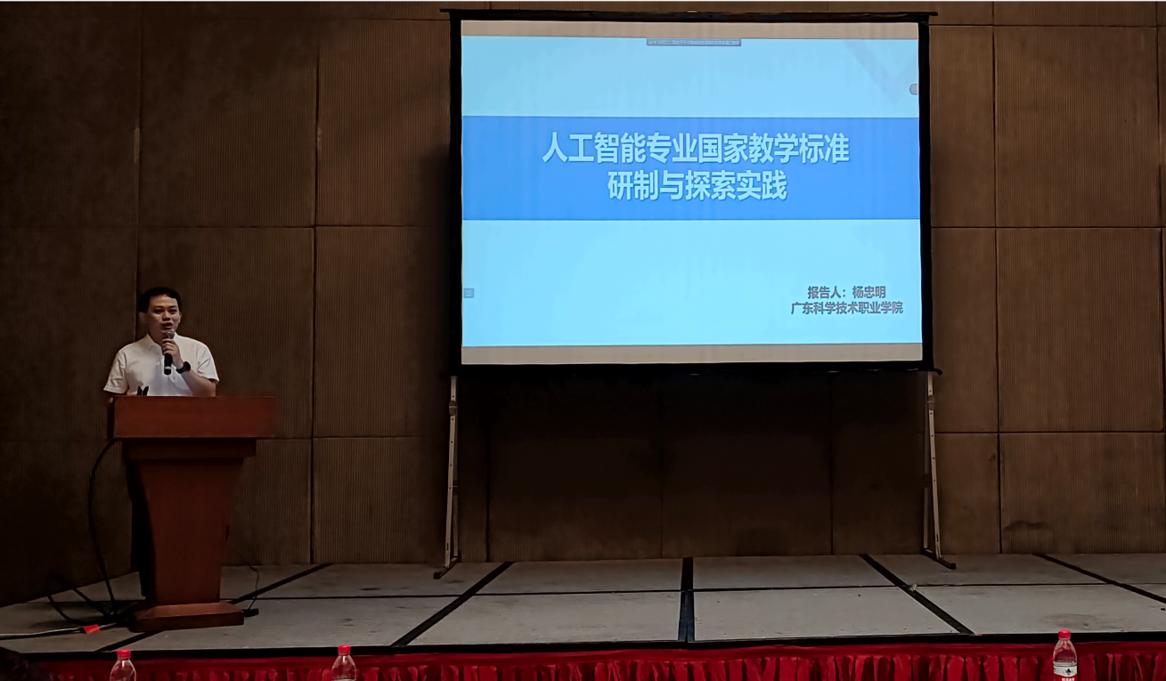 在本届年会的工业互联网与人工智能人才培养分论坛上,副院长杨忠明教授作了《人工智能专业国家教学标准研制与探索实践》的主题报告。