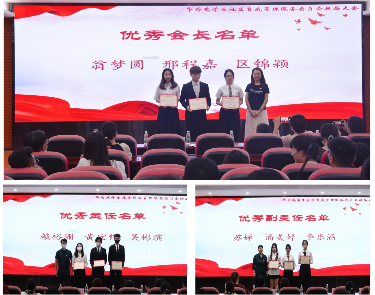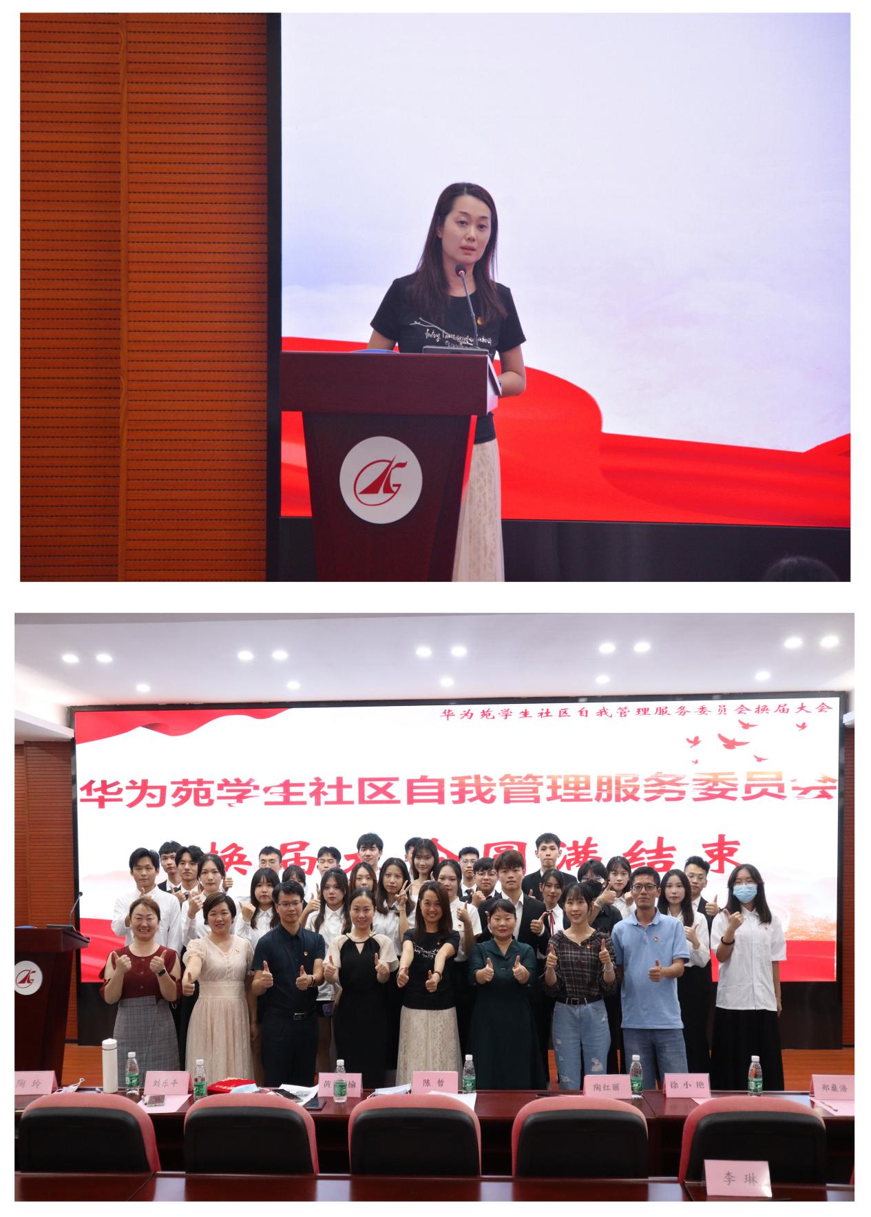 最后,陈哲为大会致闭幕词,她指出,打造华为苑一站式学生管理服务社区高职院校样板点,承载着全学院乃至全校的殷切期望,建设好社区、服务好社区需要每位自管会成员不懈努力。陈哲对同学们提出三个希望:希望华为苑通过打造一系列的品牌活动培养学生成为德智体美劳全面发展的社会主义建设者和接班人;希望华为苑在大家的努力下成为学院和学生共同成长的美好家园;希望自管会干部带领全体社区同学,把华为苑打造成为同学们实现梦想的地方,如同自管会的会歌一样,带领全体同学成为“勇敢的追梦人”!