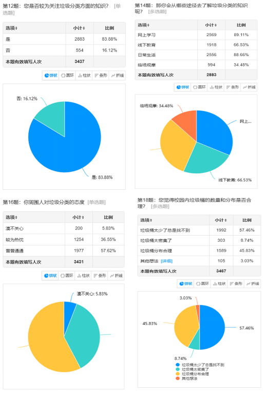活动前期,为深入了解学生对垃圾分类知识的了解情况,华为苑社区自管会开展了线上及线下“垃圾分类知识普及情况”调研活动,共3000余名学生参与此次调研,通过调研所得数据并进行分析,听取学生的意见找出现存的一些问题并及时做出合适的对策。接着华为苑社区自管会将垃圾分类知识精细化,通过知识普及座谈会、线上“垃圾分类知识”答题、趣味摆摊、垃圾分类指引投放等活动,向学生宣讲垃圾减量、垃圾分类等基本常识和分类方法,让绿色生活走进社区。