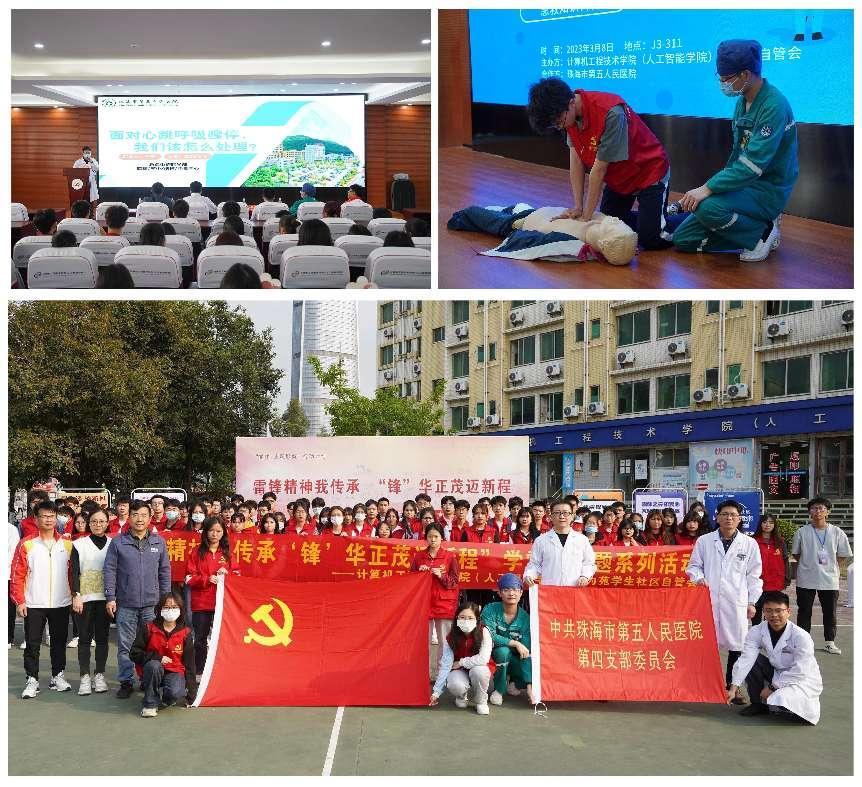弘扬雷锋精神,急救科普进社区。本次系列活动邀请到珠海市第五人民医院急诊科走进华为苑学生社区,开展急救科普知识宣讲活动,华为苑学生社区全体楼栋层长代表参加活动。活动中,医务人员采用“心肺复苏急救理论讲解”+“心肺复苏模拟人操作介绍”+“心肺复苏真人体验”+“志愿者实操训练”模式,为同学们科普急救知识,传授急救技能,营造学雷锋浓厚氛围,增强同学们的爱心急救意识,掌握急救知识,传播雷锋精神和志愿服务理念,培育社区志愿服务文化。