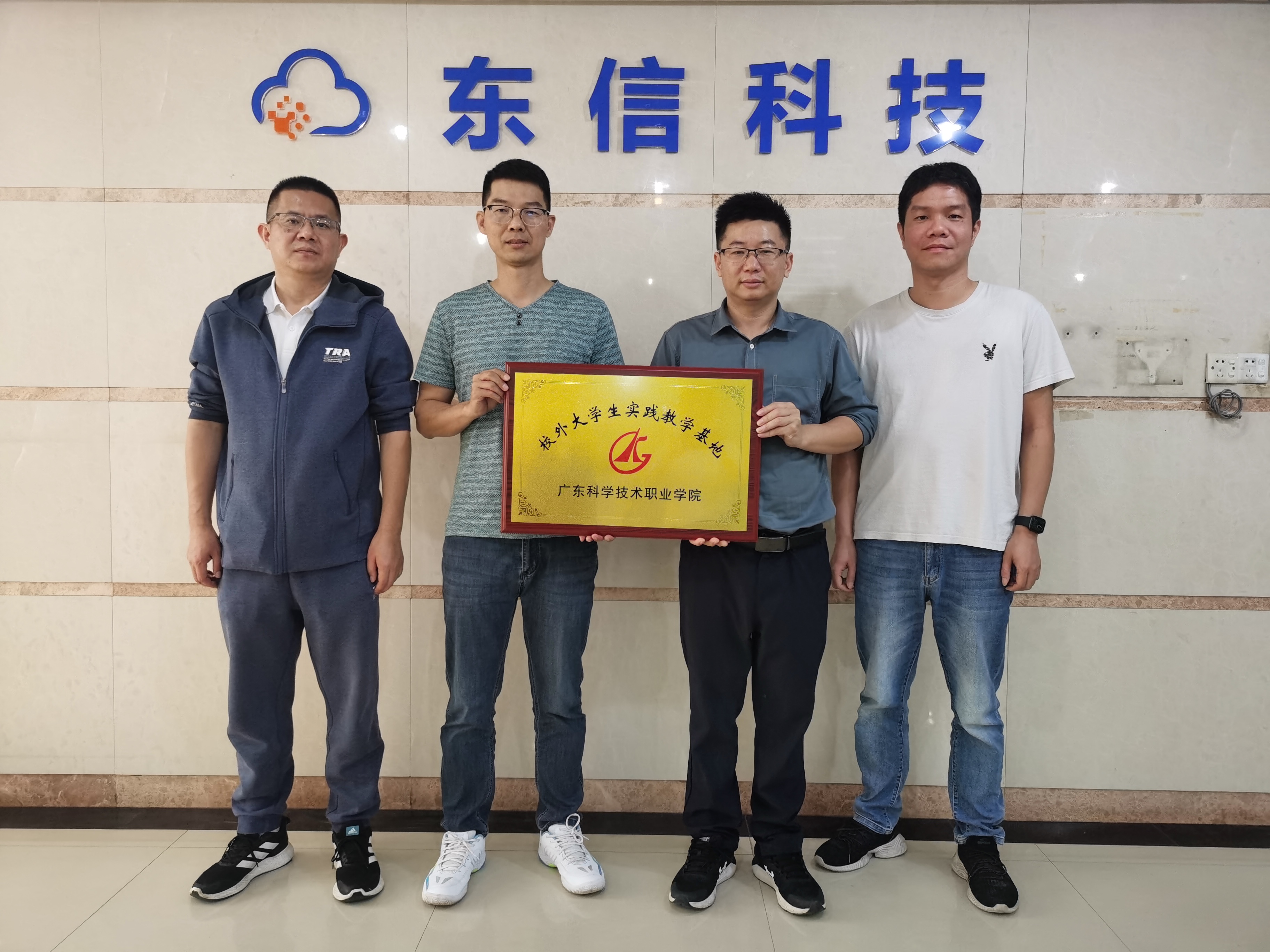 两位老师首先来到江门市东信科技有限公司,在公司总经理林铨晃的陪同下,参观了公司新的办公场地,了解公司的业务发展情况。双方就软件开发、项目运营、人才招聘、项目班合作等多方面进行了深入的交流,作为广东科学技术职业学院校外大学生实践教学基地,东信科技一直关注我校学生发展以及学院双高建设,并于2022年与学校签订了校外实践基地建设协议,此次交流就是为了加深双方的合作,并为企业授牌。