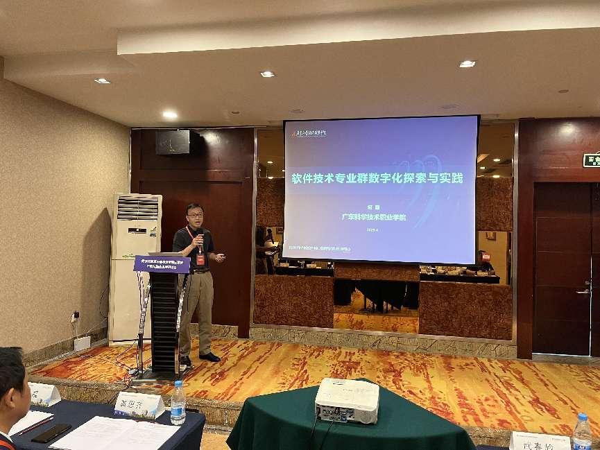 何磊主任主要从数字经济时代人才培养的挑战与主要做法、软件技术高水平专业群改革成效等方面介绍了计算机学院人才培养建设的新思路与成果,特别介绍了我院与华为深度合作,联合中软国际等一大批优秀的生态企业,携手共建“云中广科”,将数字化的校园学习与生活落实到学生日常的方方面面,采用全方位、全流程的育人策略,极大地提高了我校职业教育的现代化、数字化的发展水平,让更多的同仁看到了广科在中国特色软件技术高水平专业群的建设中所取得的卓越成果。报告得到了与会领导、专家、教师以及企业代表的广泛认可,何磊主任就数字化建设细节与参会代表进行了深入交流。
