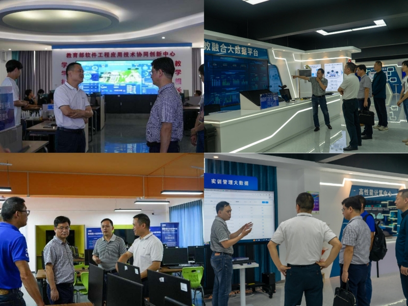会后,谭见君一行参观了学院华为鲲鹏数字产业学院、产教融合创新数字工场、学院教师发展中心、智慧教室等实践场所。