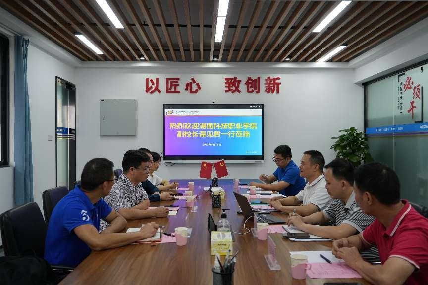 谭见君对学院的热情接待表示感谢,介绍了湖南科技职业学院的基本情况,以及在专业建设、课程及资源建设、数字化建设、体制机制建设等方面的情况。谭见君表示,计算机学院取得的成果及国内影响力,与学院深化体制机制建设、创新人才培养模式、构建教师教学团队、改革教学方法、提升科研与社会服务能力等方面的建设是紧密联系的,接下来将加强两校之间的交流互通,共同探讨人才培养、课程及资源建设、产教科融合等方面的建设。