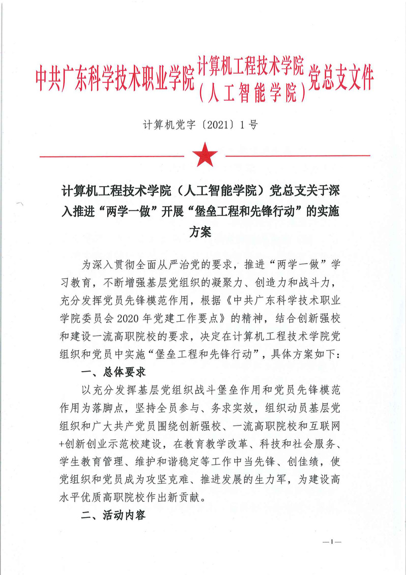 计算机工程技术学院(人工智能学院)党总支关于深入推进“两学一做”开展“堡垒工程和先锋行动” 的实施方案