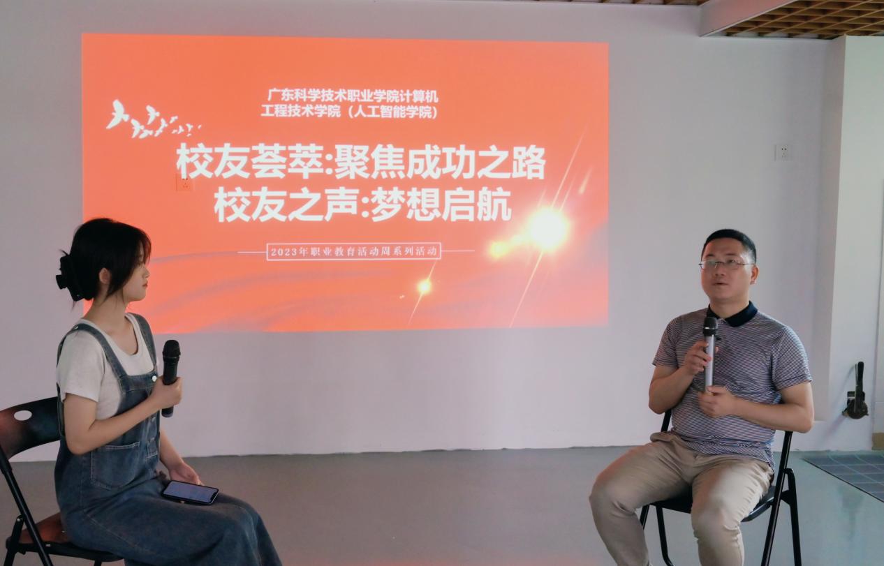 本站讯 为学习贯彻习近平新时代中国特色社会主义思想主题教育,落实“学思想、强党性、重实践、建新功”总要求,5月19日,广东科学技术职业学院计算机工程技术学院(人工智能学院)以“学思践悟 知行合一”职业教育活动周系列活动为抓手,开展了“校友荟萃:聚焦成功之路”主题活动。活动在J3-311会议厅以及华为苑“一站式”学生社区活动室举行。