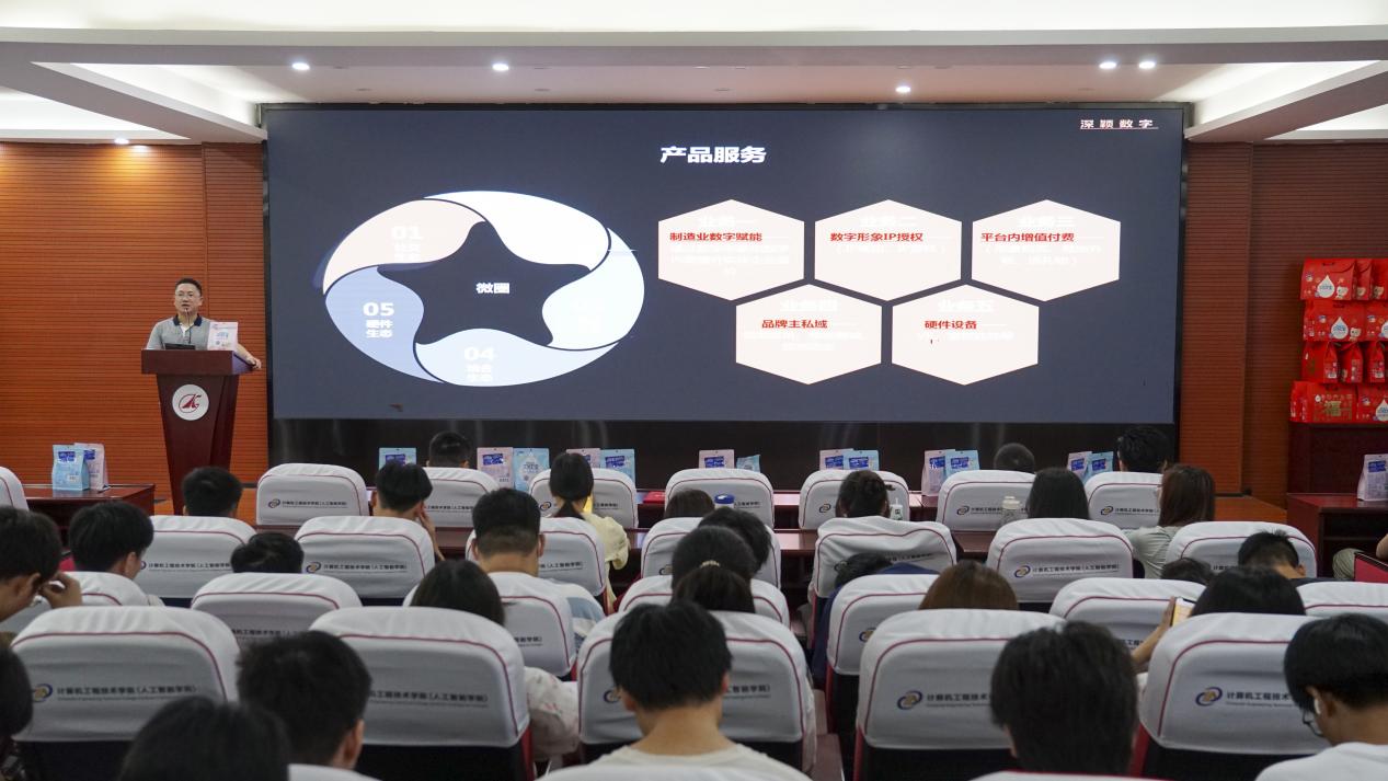 本次活动特邀2010届校友、苍凌互联网技术(深圳)有限公司总经理、深圳市高层次人才黄颖来校。在“校友讲堂:聚焦职场”主题讲座中,黄颖结合公司发展历程和产品创新展开介绍,分享了自己的创业故事。在深圳开始创业后,他结合专业优势挖掘前沿科技,以期打造社交网络新业态,并顺应新时代信息技术需求与数字经济广阔的市场。会上,黄颖受聘为计算机工程技术学院(人工智能学院)产业导师及客座教授。
