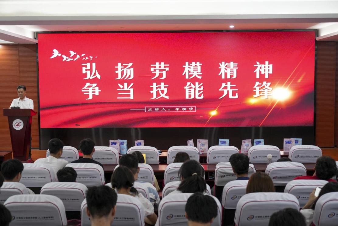 李柳钦以《弘扬劳模精神 争当技能先锋》为题展开讲座,声情并茂地分享了他从事机械制造工作30多年来,如何从一名普通的职校生成长为能够独当一面的技术尖兵,在平凡的岗位上用汗水铸就不平凡的业绩。