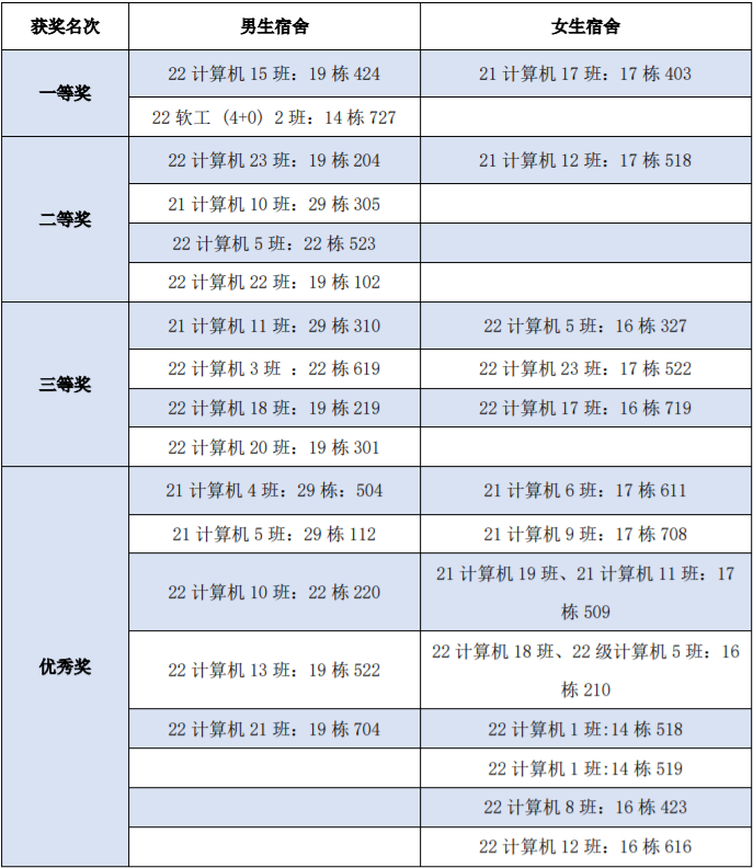 学生宿舍作为生活和学习的基本单元,良好的宿舍文化有利于营造良好的生活和学习环境、有利于形成建良好的舍风舍貌、有利于树立正确的价值观。同时,宿舍文化是校园文化建设的重要组成部分,通过优秀宿舍文化的培育和营造,从而推进优良舍风、学风、校风的形成,促进青年学子成长成才。本次宿舍风采展示大赛是推进“一站式”学生社区建设的重要举措,丰富了学生社区的文化生活,增强了学生的集体荣誉感、归属感和自豪感,为增强学生的综合素质、促进学生全面发展提供了育人平台。比赛虽已圆满落幕,计算机学院将持续把开展文化活动作为“一站式”学生社区建设的重要内容之一,不断提升学生社区文化浸润,丰富建设内涵,打造和谐文明、温馨舒适的育人园地。