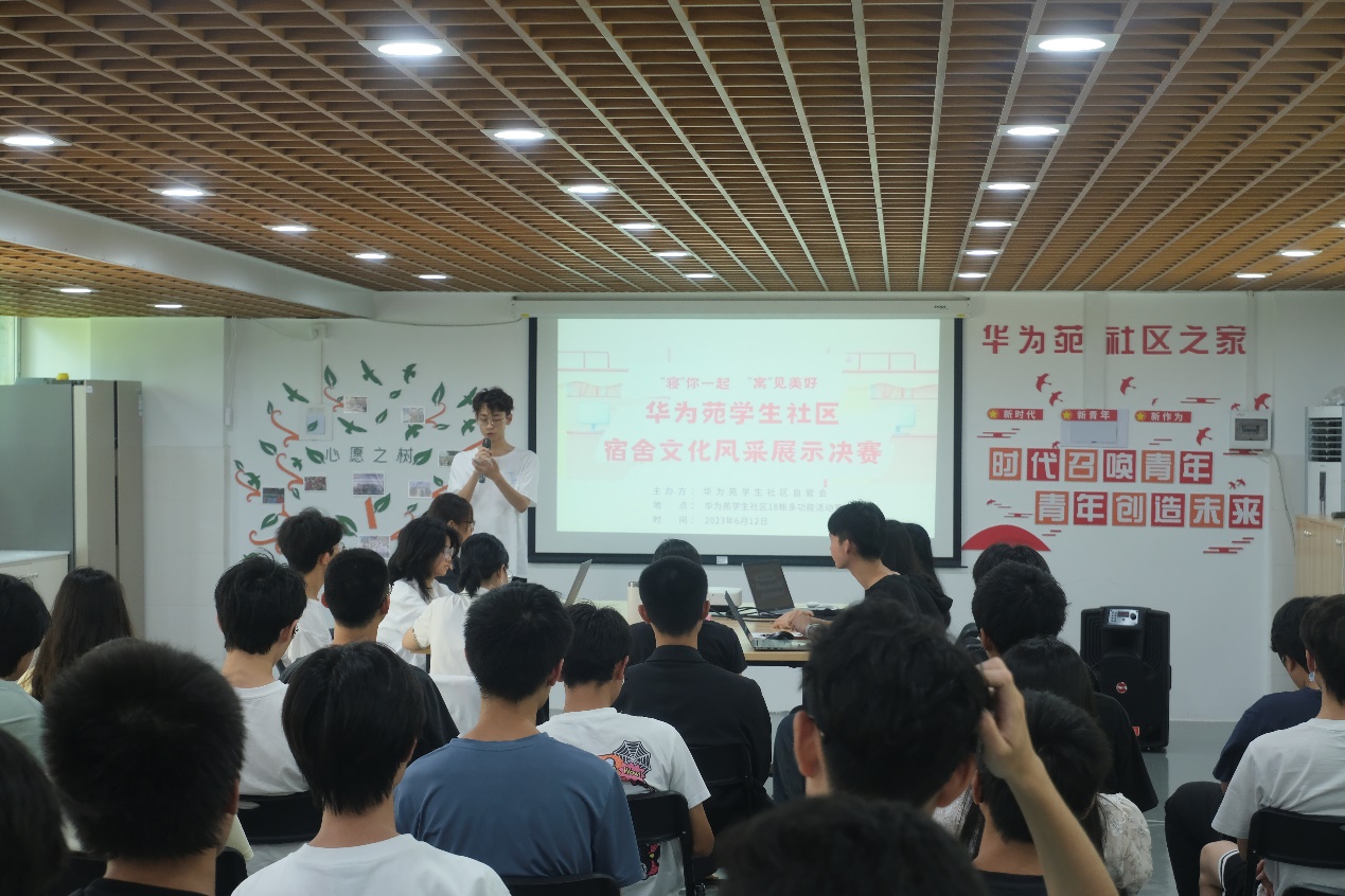 本站讯 为深入开展学习贯彻习近平新时代中国特色社会主义思想主题教育,贯彻落实党的二十大精神,深入推进“一站式”学生社区建设工作,丰富学生社区文化活动,开展新时代大学生宿舍文化建设,加强劳动教育,充分发挥学生宿舍文化育人功能,培养学生日常劳动习惯,促进学生德智体美劳全面发展,计算机工程技术学院(人工智能学院)华为苑学生社区自我管理服务委员会通过开展“‘寝’你一起,‘寓’见美好”宿舍风采展示系列活动,积极构建文明、和谐、友善、安全的宿舍环境。6月12日,华为苑“一站式”学生社区成功举办宿舍文化风采展示决赛。辅导员陶玲、刘远萍以及华为苑自管会文明宿舍创建中心学生代表张景榆、林泽楷担任评委,各班级同学和参赛宿舍代表共80多人参与了本次比赛。