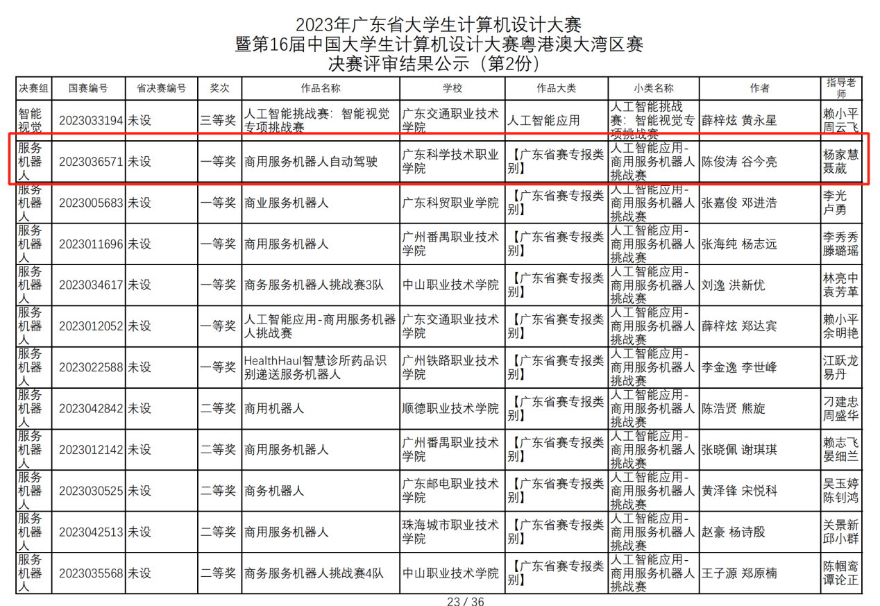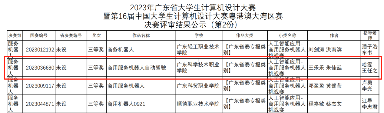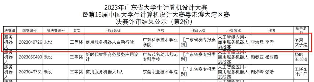 本站讯 7月2日,由广东省教育厅主办、广东省外语外贸大学和广州番禺职业技术学院承办的2023年广东省大学生计算机设计大赛人工智能挑战赛“商用服务机器人”赛项决赛在广州番禺职业技术学院成功举办。全省100多支队伍经过初赛后,有50支队伍进入决赛。