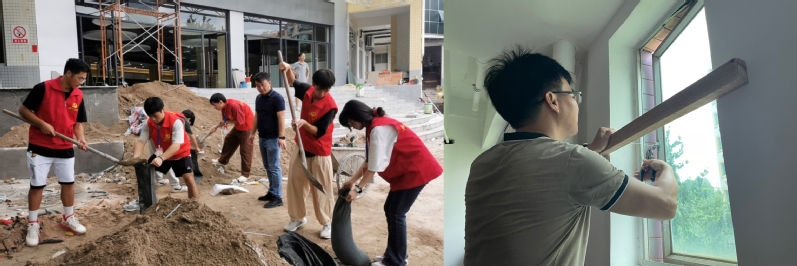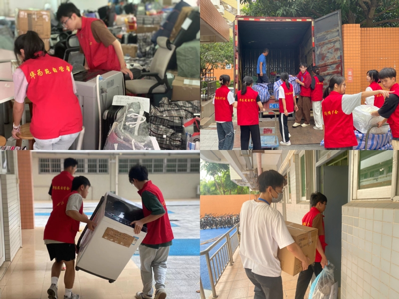 9月1日搬迁当天,恰逢17级超强台风“苏拉”逼近广东,为了保障宿舍搬迁工作的顺利进行,全力配合做好校园防汛防风工作,为新学期开学筑好安全防线,学院党总支、学工部长组织班主任深入学生社区,协助学生做好宿舍搬迁。学工部根据现场情况不断完善搬迁细节,并将学生志愿者分为不同小组,各司其职,周密配合,认真清点各栋楼下放有学生行李的仓库,利用防洪沙袋对仓库门进行防涝措施,同时对每个仓库进行全面检查,确保门窗紧闭无损坏;合理规划搬迁运输路线,充分做好物主、学生联络员以及车辆的衔接配对工作。志愿者们有的协助搬运行李,几人分工配合将行李合力搬至新的宿舍楼;有的维持现场秩序,保障搬迁工作安全、平稳、有序推进。大家齐心协力,共同努力,及时解决同学们在搬迁工作中遇到的困难,充分发挥华为苑学生社区青年志愿者团结互助、无私奉献的精神,助力学院有序搬迁。