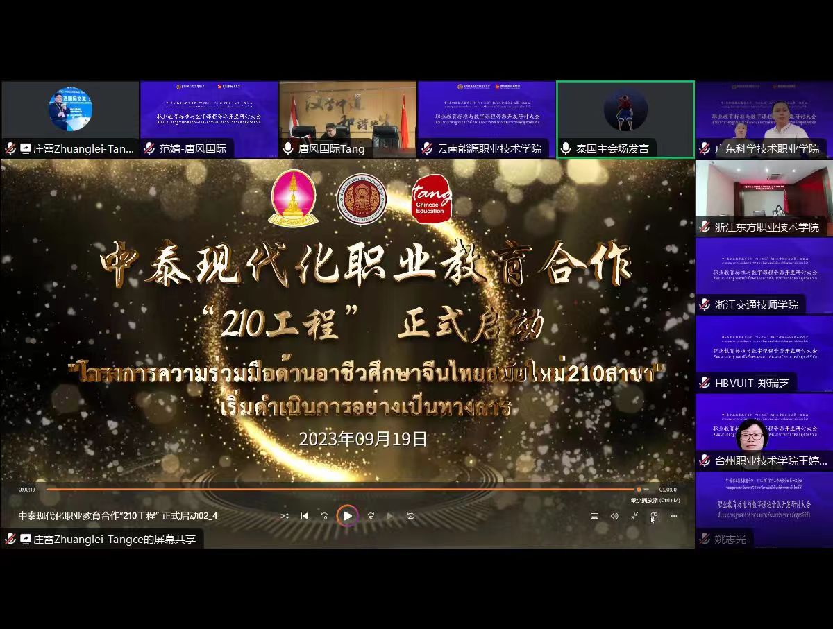 本站讯 中泰现代化职业教育合作“210工程”是中泰两国运用先进科技与教育手段共建21世纪世界一流现代化职业教育体系的系统性工程,为服务中国“一带一路”重大倡议及泰国国民经济发展重大政策,泰国职业教育委员会于2023年9月18-19日在泰国首都曼谷举办线上首期“210工程”执行工作联合会议,学校受泰国职业教育委员会邀请,学校外事办老师刘钟梁;计算机学院副院长杨忠明教授,科技与合作部(创新创业教研室)主任陈宗仁,专任教师文聪敏、朱弘旭、丁楠作为中方受邀嘉宾参加本次云端会议。