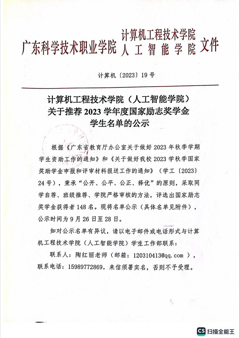 附件 计算机学院2023年度国家励志奖学金学生名单.xls