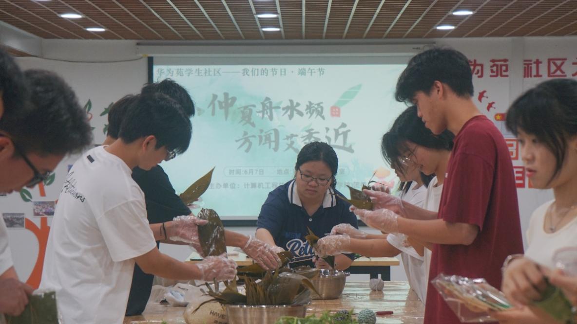 本站讯 微风习习,粽香四溢。时值中华民族传统节日端午节来临之际,为深入学习贯彻习近平文化思想,进一步传承与弘扬中华优秀传统文化,丰富华为苑学生社区的文化生活,67日下午,计算机工程技术学院(人工智能学院)团委组织团学青年在华为苑学生社区多功能活动室举办“仲夏竞龙舟,细闻粽叶香”端午文化体验活动。