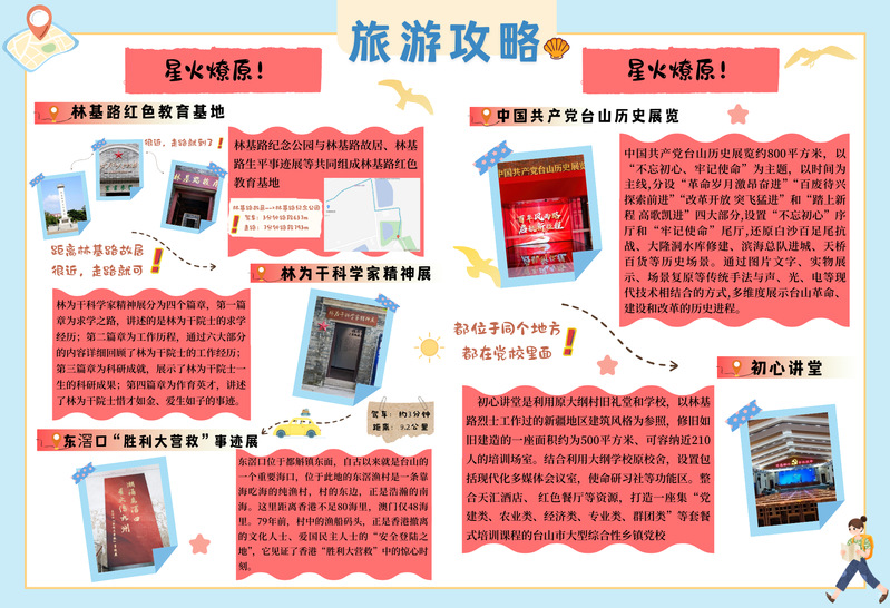 实践团创新地方志资源与红旅资源的利用与宣传形式,编制了一本融合林基路同志红色禀赋、当地特色消费业态分布及都斛特色产业的都斛红旅消费手册,全景式展示都斛镇在红色旅游、红色消费、产业发展等方面的独特魅力。从星火燎原的红色基地到绿荫遍野的生态文化主题园,再到碧海蓝天的海滨胜地,满足游客对多元旅游体验的无限向往。通过发放宣传手册,游客能顷刻领略珍贵的历史文化瑰宝、品味地道美食物产、体会乡村美景与风土人情。红旅手册让掌中畅游史河成为可能,让方志历史“活”起来。