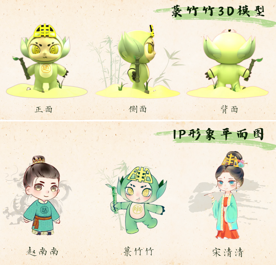 “非遗+技术”跨界携手,以“新”为钥,激活“方志南门”。实践团借助“数字艺术”“融媒体技术”等现代技术手段,以精巧可爱的吉祥物形象为突破口,聚焦南门村方志文化,在承袭宋代公子“赵南南”与绿竹精灵“菉竹竹”系列文化IP灵感的基础上,创新性打造南门女子“宋清清”文化IP形象,深入结合“方志南门”文化内核和艺术表达,实现古老智慧和现代科技美妙邂逅,让地方志文化在新时代焕发“新机”。
