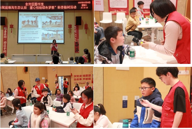 学院党总支充分发挥高校党建优势,以“党建红”引领方向,推动“科技蓝”与“生态绿”的深度融合。学院党总支组织委员兼厚德立志学生党支部书记徐小艳老师表示:“通过党建共建,我们希望将党的创新理论与生态文明教育紧密结合,让红色基因在生态教育中绽放光彩。”金湾区图书馆党支部也积极发挥文化阵地作用,为活动提供了丰富的资源与平台支持,共同助力中小学生生态素养的提升。