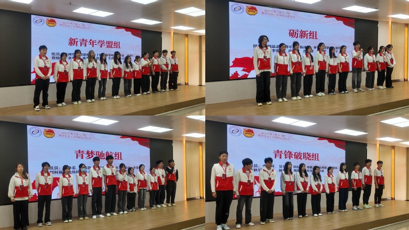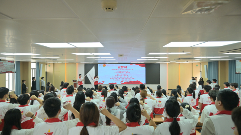 青马学员们在学员代表领誓下庄严地宣读青马誓言,每一句誓言都铿锵有力,每一声宣誓都掷地有声,展现出青马成员们的坚定信念和誓要为学校高质量建设、发展贡献青春力量的决心。
