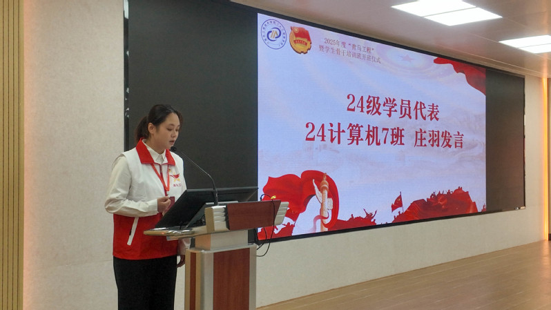 责任的“红”、坚持的“蓝”、创新的“金”,24级学员代表庄羽以“三原色”诠释她的个人成长和对青马工程的无限期待。她用颜色象征了青年马克思主义者心中爱国的赤诚、砥砺前行的执着和守正创新的智慧。演讲中,她立志成为知行合一、作为担当的实干家,让在青马班的每个像素都承载理想,每段程序都注解担当。