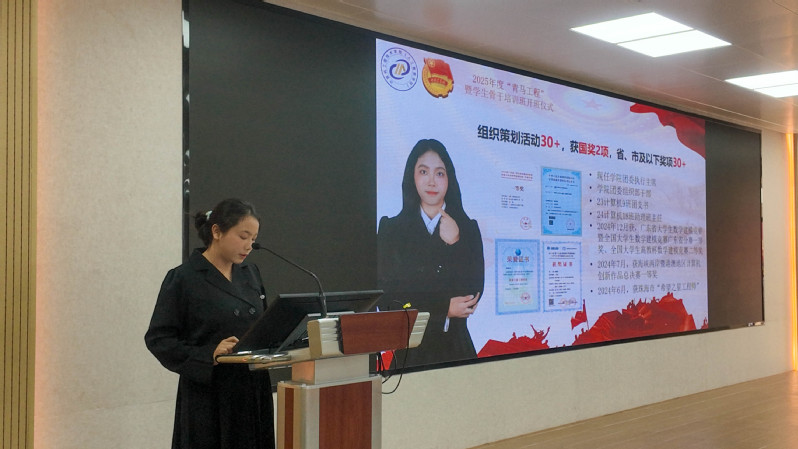23级优秀学员陆晓芬以贯穿她大学生活的两个“30+”为青马学员展现“青马工程”培训班给她带来的蜕变——策划了30+场活动和获得各级奖项30+项。她表示青马班让她从一名活动参与者转变成策划者,让她有勇气和能力站上更多展现自己的舞台。今年她也成了青马工程培训班的主要负责人,希望将青春与坚持的力量代代传承下去。