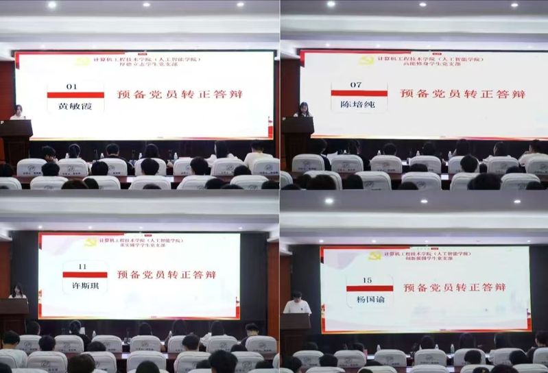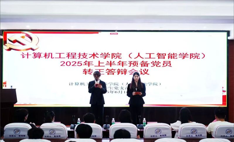 本站讯 为严把党员发展质量关,全面考察预备党员在考察期的综合表现,进一步加强党员教育管理,保持党员队伍的先进性,计算机工程技术学院(人工智能学院)党总支于6月15日在J3-311通过线上、线下相结合的方式召开2025年上半年预备党员转正答辩会议。学院党总支组织委员兼厚德立志学生党支部书记徐小艳、学院团委副书记兼高能修身学生党支部书记李琳、学院团委副书记兼创新报国学生党支部纪检委员郜潮、厚德立志学生党支部纪检委员刘玉芳、学生党员林泽鑫及蔡洁轩出席会议并担任答辩评委,全体学生党员、预备党员及部分入党积极分子参加了本次答辩会议。
