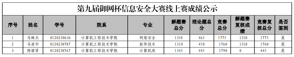 本站讯 近日,第九届“御网杯”网络安全大赛初赛圆满落下帷幕。本届大赛由中共河南省委网络安全和信息化委员会办公室、河南省教育厅主办,吸引了全国31个省(自治区、直辖市)超1.6万名网络安全精英同场竞技。我校计算机工程学院(人工智能学院)学子马焕杰、马凌宇、陈诺贤凭借扎实的专业知识、出色的技术能力与顽强拼搏的精神,在比赛中脱颖而出,斩获佳绩,顺利晋级决赛。