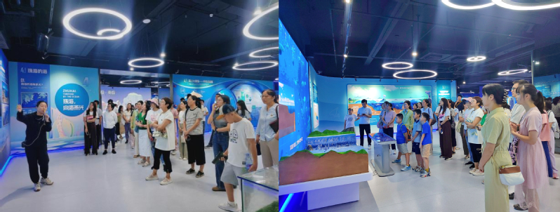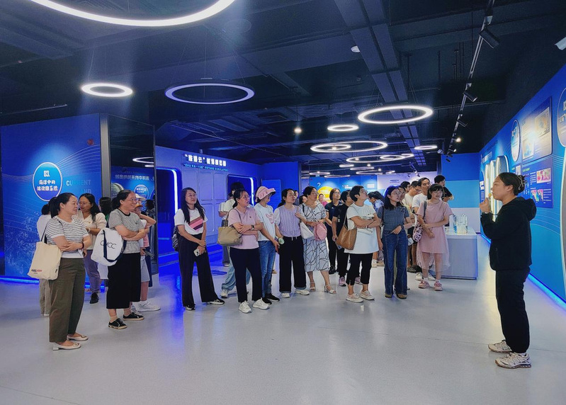 “同根同源 同心同梦”粤港澳大湾区历史文化主题展览,以“江”“海”“湾”“志”四个篇章串联起“临江而起”“向海而兴”“依湾而强”“志向未来”的发展脉络,恰是“探秘深蓝强国路”的生动注脚。这里全面展现了粤港澳大湾区的自然风貌、传统文化、历史轨迹与发展硕果,场景复原、实物模型和沉浸观影装置,让教师们沉浸式感受大湾区从临江而起的蹒跚起步,到向海而兴的蓬勃发展,再到依湾而强的辉煌成就,深刻体会到这片土地上强国之路的坚实足迹。