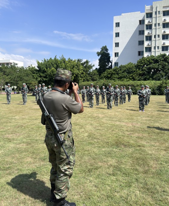 吴子腾在2025级新生军事技能训练教官训练中展示应急棍