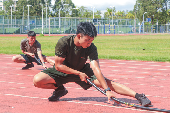 他们是新生军训的“教官团”:作为教官,他们本就善于组织、精于指挥。在此次行动中,他们自然成为现场最佳的“指挥员”和“教练员”,科学高效地带领同学们完成沙袋堆放、区域布防等任务。