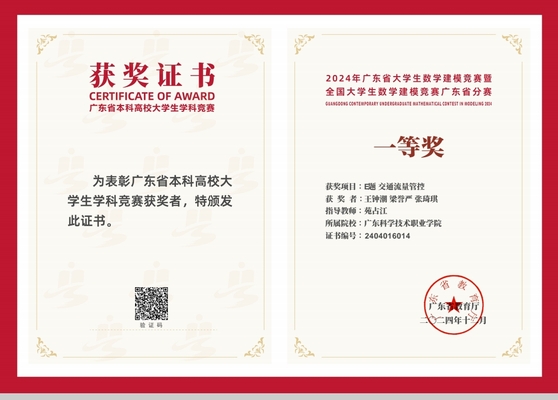 王钟潮团队在2024年广东省大学生数学建模竞赛暨全国大学生数学建模竞赛广东省分赛获得一等奖
