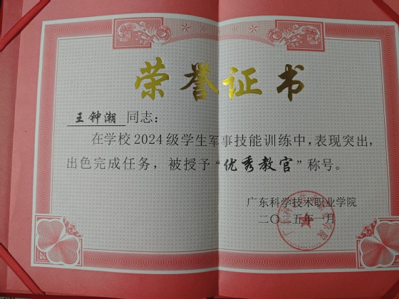 王钟潮在学校2024级学生军事技能训练中获“优秀教官”