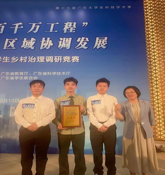 周千翔团队的调研作品在第十七届广东大学生科技学术季活动之第二届广东大学生乡村治理调研竞赛中荣获二等奖