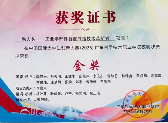 李俊杰团队在中国国际大学生创新大赛(2025)校赛、省赛中荣获金奖