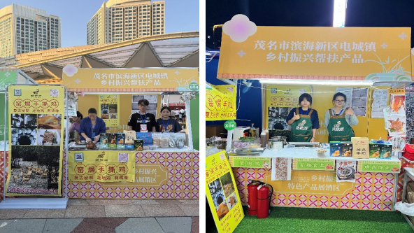 在这场备受瞩目的美食盛会中,来自广东科学技术职业学院的农村科技特派员李辉博士团队带领着四名朝气蓬勃的学生志愿者,在主会场和分会场的乡村振兴展区精心搭建起两个展位,将茂名市电白区电城镇的特色农副产品带到了美食节的舞台上。