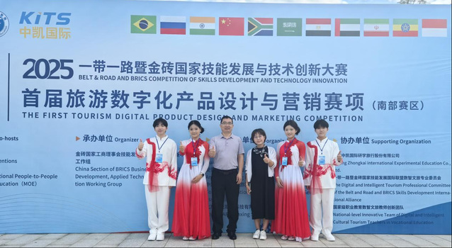 本站讯10月11—14日,2025“一带一路”暨金砖国家技能发展与技术创新大赛之首届旅游数字化产品设计与营销赛项(南部赛区)传来捷报,旅游学院参赛队伍不畏强敌,奋勇拼搏,魏微、周程明、时洁、陈洁容四位老师组成的教师组团队以第一名的成绩取得南部赛区教师组一等奖并晋级国赛,陈兴毅、李沁铷、张梦、肖坚彬四位学生组成的职教组取得南部赛区职教组三等奖。
