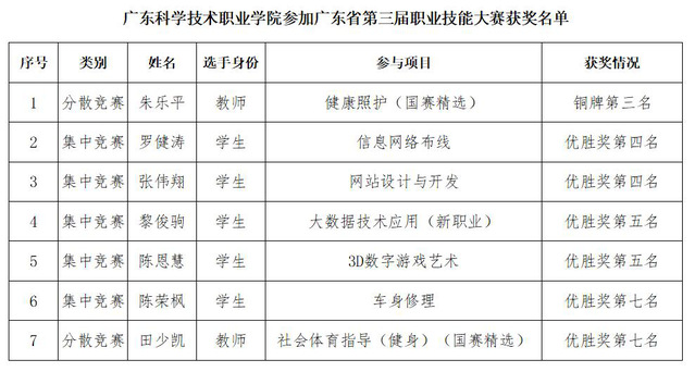 本站讯 2023年5月21日晚,广东省第三届职业技能大赛在深圳市会展中心圆满落下帷幕。我校首次代表珠海市参赛,斩获1铜牌6优胜奖的成绩。