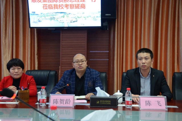 本站讯(通讯员/摄影:林梅 ) 3月14日下午,佛山市顺发人力资源有限公司总经理陈贺龄携长虹、美的、北汽福田等公司代表一行8人来我校洽谈校企合作项目。我校副校长朱小平、科技与校企合作处负责人周文琼、外事办主任李广荣、机器人学院党总支书记吴积军、机械与汽车学院副院长吴云溪等参加。