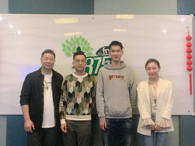 与珠海交通广播FM87.5《创客珠海》栏目主持人安达、天宝合影