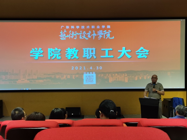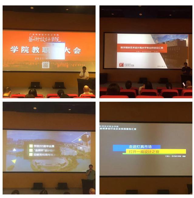 随后,学院院长沈鸿才就数字媒体艺术设计高水平专业群申报工作的总体思路作了传达;副院长曹春晓通报了庆祝中国共产党建党100周年珠澳艺术设计作品联展(含毕业设计)及金辉杯比赛事宜;产品艺术设计专业续骏老师向大家分享了下企业经验;相关老师对学校课程考核制度文件及财务报账等相关事宜作了讲解。
