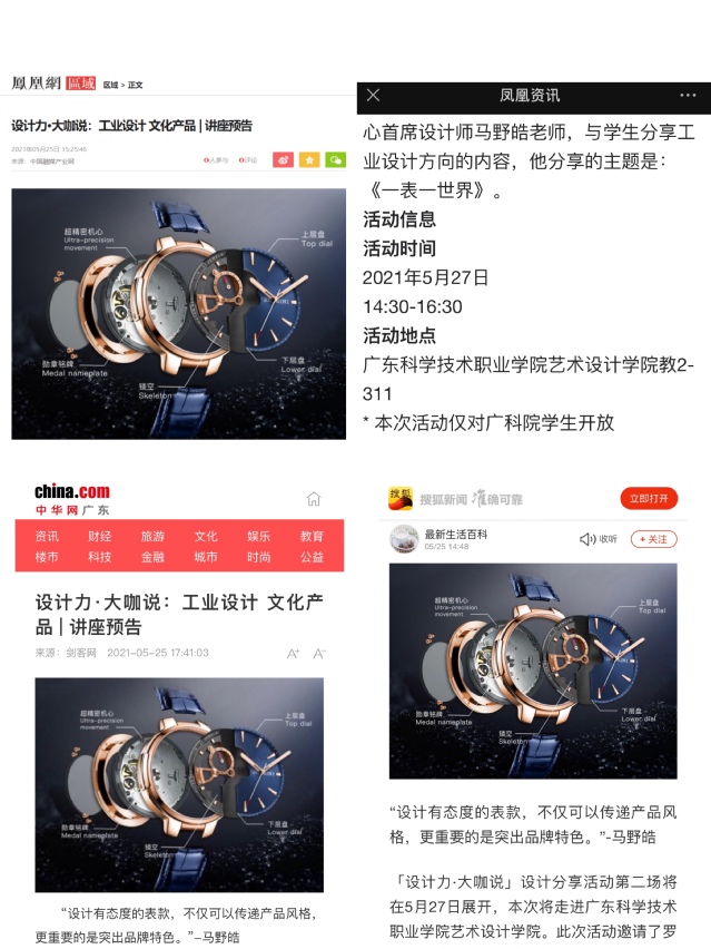 此次设计分享活动吸引了凤凰网、凤凰资讯、中华网、搜狐新闻等多家主流媒体报道。珠海市委组织部、人社局、工信局等政府职能部门也派员出席了本次活动,共同聆听马老师的设计分享。