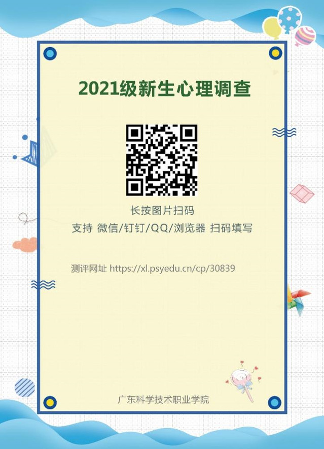 为维护校园的安全稳定,有效预防学生心理危机事件发生,切实保障广大学生的生命安全和身体健康,根据学校心理中心要求,现对我院21级全体新生进行心理普查工作,具体安排如下:
