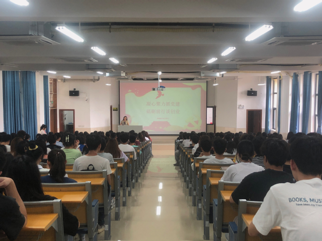 本站讯 4月27日中午,艺术设计学院学生支部J4108开展“凝心聚力抓党建,砥砺前行谈创业”主题“互联网+”大学生创新创业大赛动员大会及备赛培训会。培训会由学生党支部书记刘炎君主持,会议特邀18级“互联网+”大学生创新创业大赛省赛获奖邱铭鸿分享他的创业经历艺术设计学院预备党员、发展对象以及入党积极分子参与培训会