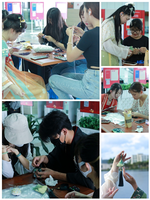 此次开展的端午传统文化宣传主题活动,丰富了同学们的校园生活,也让同学们更加了解了端午的历史文化,体会到民间艺人创造的质朴的美,通过缝香囊、编五彩绳,在传承传统文化的过程中鼓励学生们大胆设计、制作既有民间意蕴又有时尚气息的手工艺品,体会创作的无限乐趣与成就感。