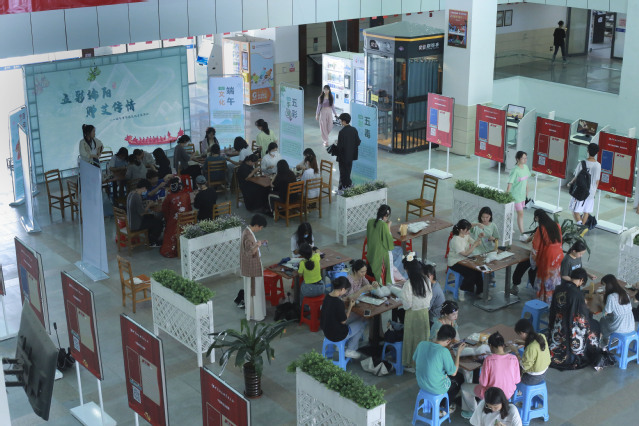 本站讯 为进一步弘扬和培养爱国主义为核心的民族精神,传承中华优秀传统文化,增强学生对民族文化的认同感和自豪感,5月28日下午,由艺术设计学院承办、艺术设计学院青竹汉服社协办的金湾社科普及基层行“五彩端阳 赠艾传情”端午节传统文化主题活动在广东科学技术职业学院图书馆二楼顺利开展。