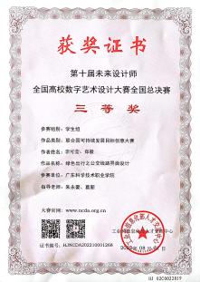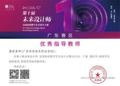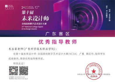 本站讯 近期,2022年第十届未来设计师全国高校数字艺术设计大赛公布了全国总决赛和广东赛区获奖名单。艺术设计学院喜获佳绩,荣获本节赛事全国赛三等奖和广东赛区一、二、三等奖全部等级奖项。朱永豪老师和葛新老师获得优秀指导教师奖,广东科学技术职业学院获得优秀组织奖。