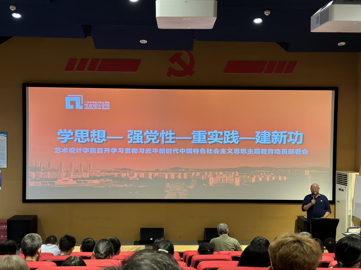 会上,艾泓泽带领全体教职工和学生党员认真学习习近平总书记在学习贯彻习近平新时代中国特色社会主义思想主题教育工作会议上的重要讲话精神,传达了学校党委关于《中共广东科学技术职业学院委员会开展学习贯彻习近平新时代中国特色社会主义思想主题教育工作方案》的文件要求,对艺术设计学院学习贯彻习近平新时代中国特色社会主义思想主题教育进行了动员部署。